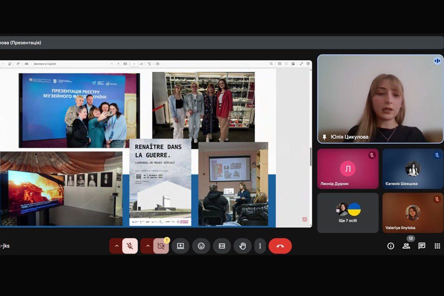 Пані Юлія поділилася власною професійною історією, яка почалася з навчання в Луганському національному університеті імені Тараса Шевченка, що об’єднує її з багатьма колегами з музею. Вона розповіла про долю закладу в умовах війни: часткова евакуація, відновлення роботи у Львові в музеї «Територія терору» у квітні 2022 року, а згодом – релокація до Києва, де музей нині функціонує на базі гуманітарного хабу «Луганщина моя».