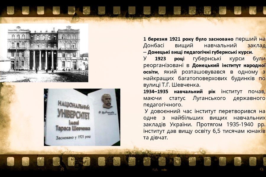 З нагоди 104-ї річниці від Дня заснування Луганського національного університету імені Тараса Шевченка викладачі та здобувачі освіти Фахового коледжу та Старобільського фахового коледжу ДЗ «ЛНУ імені Тараса Шевченка» брали участь у заході «Наш університет: сторінками славетної історії», яку проводив Олександр Набока, доктор історичних наук, професор, завідувач кафедри історії та археології Луганського національного університету імені Тараса Шевченка.