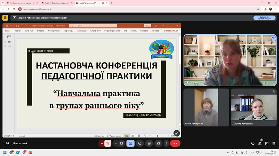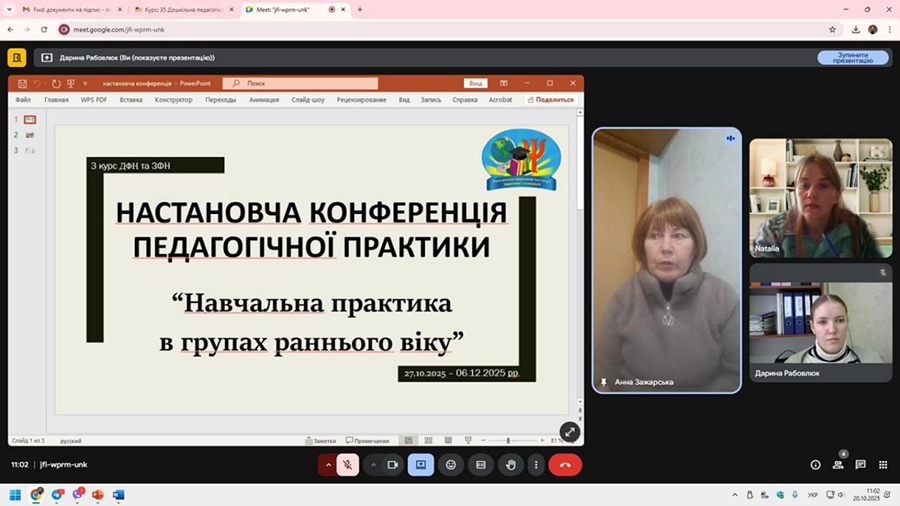 20 жовтня на кафедрі розвитку дитини раннього і дошкільного віку відбулася настановча конференція до навчальної педагогічної практики в групах раннього віку для здобувачів першого (бакалаврського) рівня вищої освіти денної та заочної форми навчання, які навчаються за освітньо-професійною програмою «Дошкільна освіта».