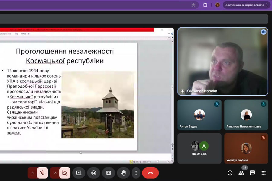 Лекцію було присвячено героїчній сторінці української військової історії – утворенню Космацької незалежної республіки та бойовому подвигу воїнів Української Повстанської Армії (УПА). Захід провів доктор історичних наук, завідувач кафедри історії та археології Луганського національного університету імені Тараса Шевченка Олександр Набока, який представив глибокий історичний аналіз подій, що відбувалися у Космачі в роки Другої світової війни.