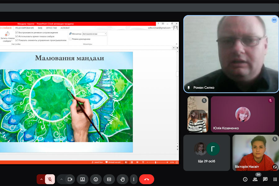 Гостьова лекція проходила під гаслом «Спілкування без слів засобами мистецтва». Під час зустрічі спікер акцентував увагу на важливості комунікації з дітьми через мистецтво, розповів про можливості його використання в педагогічній і терапевтичній практиці. Окрему увагу було приділено мандалотерапії та мульттерапії — сучасним методам, що сприяють гармонізації емоційного стану та розвитку особистості.