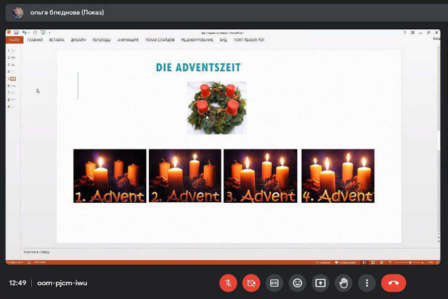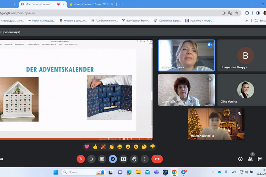 19 грудня на кафедрі романо-германської філології навчально-наукового інституту філології і журналістики відбувся культурно-інформативний захід на тему „Das müssen wir feiern“, присвячений німецьким різдвяним традиціям: святкуванню Різдва у Німеччині, Адвенту, символам Різдва, різдвяному адвент-календарю. Цей захід був проведений у рамках заходів «Різдвяний Адвент на кафедрі романо-германської філології». Він був організований і представлений глядачам старшим викладачем кафедри Бледновою Ольгою Григорівною та студентами третього курсу спеціальності 014 СО Мова і література (німецька, англійська).