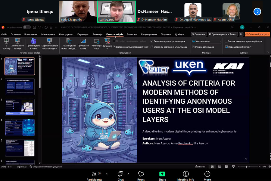 Урочисте відкриття конференції 29 січня ознаменувалося надихаючими промовами ректорки ЛНУ імені Тараса Шевченка, професорки Олени Караман, та ректора Аль-Рафідайн університету, доктора Махмуда Джавада Абу Аль Шера. Професійна дискусія, що розгорнулася під модераторством професора Юрія Хлапоніна та доктора Наміра Касіма, велася виключно англійською мовою, підкреслюючи глобальний статус події. Географія доповідачів охопила весь світ: від канадського експерта з кібербезпеки Адама Ашера (Stream Security, Торонто) та польських професорів Марека Александра та Анни Корченко до представників провідних українських вишів — КАІ, КНУ імені Тараса Шевченка та ДТЕУ.
