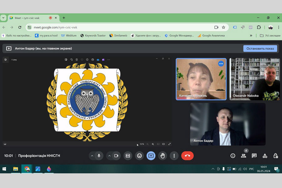На цей раз керівництво Інституту та кафедри історії та археології зустрілося онлайн з учнями-одинадцятикасниками Сіверськодонецького Ліцею «Інітіум». Ініціатором та розпорядником заходу черговий раз виступив д.і.н., професор, завідувач кафедри історії та археології Олександр Набока. Він подякував керівництву та учням навчального закладу за активно співробітництво із Інститутом.