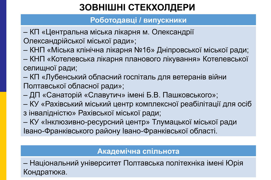 Кафедра фізичної терапії, ерготерапії та медичної діагностики висловлює щиру вдячність стейкхолдерам за співпрацю та позитивні відгуки на освітні програми.