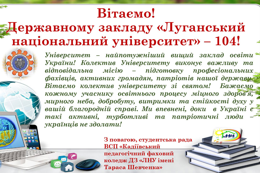 З 14 лютого 2025 року в рамках відзначення 104-ї річниці від Дня заснування Державного закладу «Луганський національний університет імені Тараса Шевченка» та профорієнтаційної роботи в Кадіївському педагогічному фаховому коледжі розпочалися оглядові просвітницькі кураторські години «Мистецтво бути педагогом. Дошкільна освіта. Соціальна робота» в дистанційному форматі.