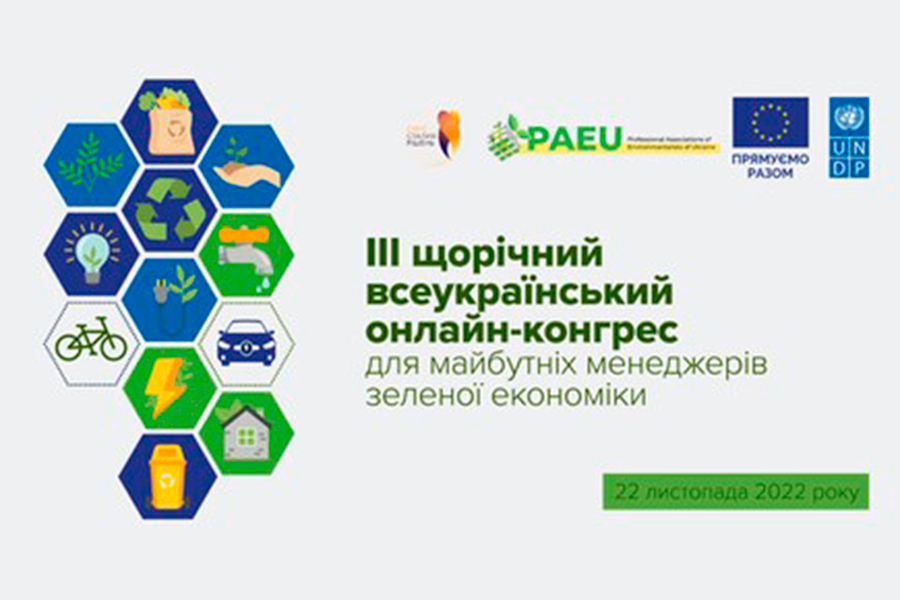 Викладачі факультету природничих наук та учасники екологічного клубу взяли участь у III щорічному всеукраїнському онлайн-конгресі для майбутніх менеджерів зеленої економіки. Під час заходу обговорювалися дуже актуальні питання для українського суспільства та економіки: як забезпечити інституційну спроможність України, щоб сфомувати зелений курс; декарбонізація і трансформація енергостратегії: роль природоохоронців; що змінила війна в кліматичній, продовольчій, природоохоронних сферах і як це вплине на вимоги до майбутніх професій; екофахівці нового покоління і розвиток прикладної сфери охорони довкілля; стратегія сталого розвитку: погляд у майбутнє - управління професійним розвитком в охороні довкілля та маркетинг екоособистості; залучення в професію: як студентам почати працювати у сфері екологізації; цифрова трансформація управління охороною довкілля.