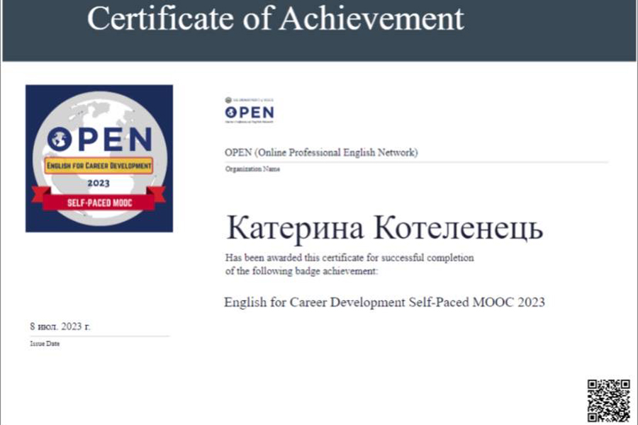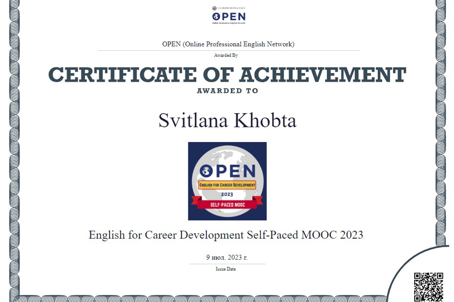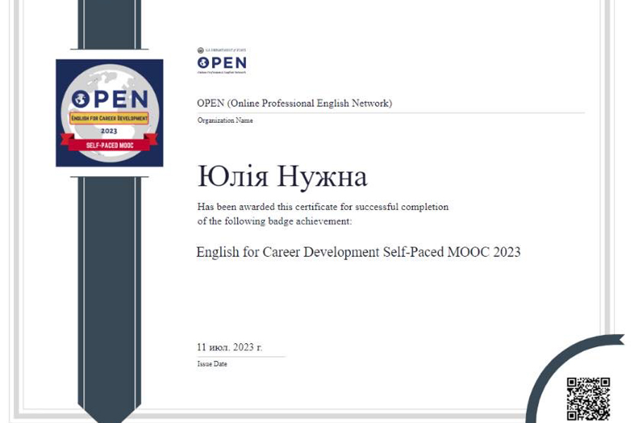 У рамках програми OPEN Державний департамент США запропонував масові безкоштовні онлайн-курси з англійської мови - English for Career Development (Self-Paced).