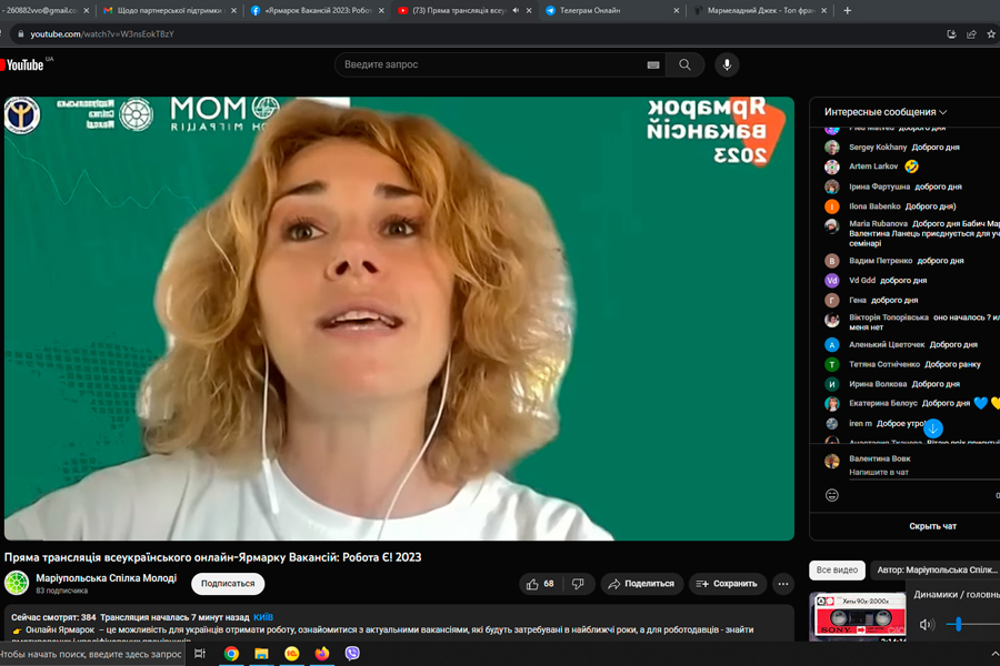 30 серпня на платформі ZOOM завідувач Центру розвитку кар’єри Луганського національного університету імені Тараса Шевченка Валентина Вовк, заступники директорів з соціально-гуманітарної роботи та відділ маркетингу взяли участь в масштабному ярмарку з працевлаштування з провідними роботодавцями, який провела громадська організація «Маріупольська Спілка Молоді» за підтримки Міжнародної організації з міграції.