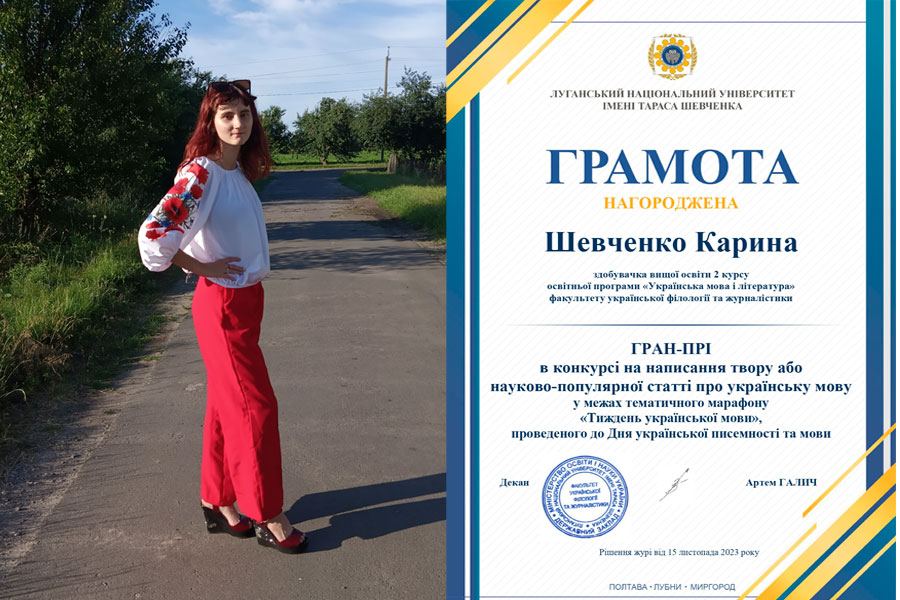 Цьогоріч гран-прі присуджено Шевченко Карині – здобувачці вищої освіти 2 курсу освітньої програми «Українська мова і література» факультету української філології та журналістики, яка подала дві поезії – «Мова» й «Розмовляй українською» – та есе «Українська мова: скарб, що надихає», присвячених красі, можливостям і багатству рідної мови.