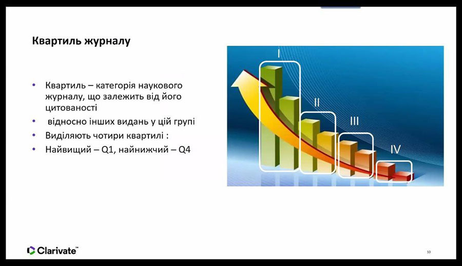 Вебінар був організований компанією Clarivate, яка є власником і виробником потужних ресурсів та інструментів, що допомагають науковцям проводити, аналізувати, презентувати наукові дослідження на світовому рівні.