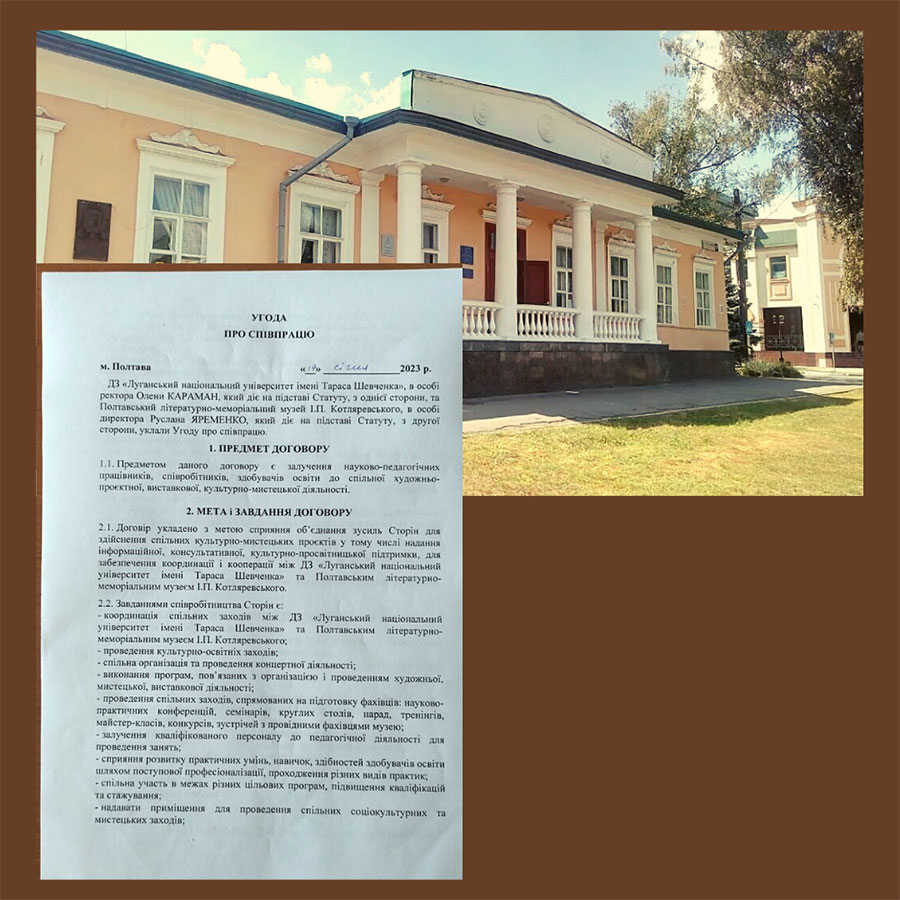 16 січня підписана угода про співпрацю з Полтавським художнім музеєм (галереєю мистецтв) імені Миколи Ярошенка, а 19 січня – з Полтавським літературно-меморіальним музеєм І.П. Котляревського для залучення науково-педагогічних працівників, співробітників, здобувачів освіти до спільної художньо-проєктної, виставкової, культурно-мистецької діяльності.