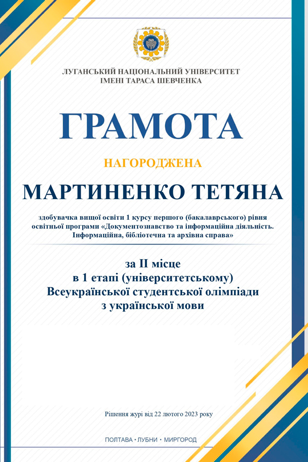 ІІ місце – Мартиненко Тетяна, ОП «Документознавство та iнформацiйна діяльність. Інформаційна, бібліотечна та архівна справа»; Колмик Валентин, ОП «Англійська мова».