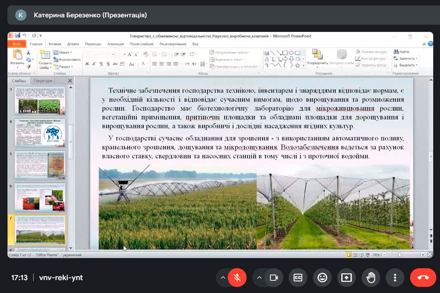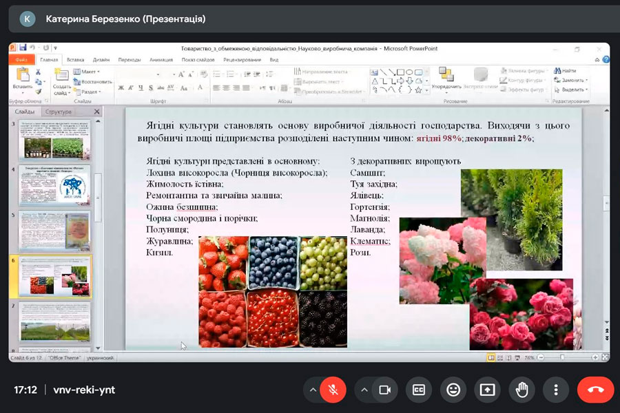 Базою практики було обрано підприємство ТОВ НВК «ЕКОПАРК». Під час захисту практики здобувачі поділилися своїми здобутками та враженнями, які вони отримали під час роботи в колективі, а також труднощами, з якими довелось зустрітися та шляхи їх подолання. Практиканти ознайомилися з базою практики – екологічними аспектами роботи установи, організацією природоохоронної діяльності, роботи відділів, лабораторій, фахівців; ознайомилися з напрямами наукової діяльності ТОВ НВК «ЕКОПАРК»; вивчили методи та обладнання для спостереження за станом навколишнього природного середовища; виконали завдання; оформили на надали звітні документи з практики. За підсумками виробничої практики здобувачі вдало захистили результати своєї праці та отримали позитивні оцінки.