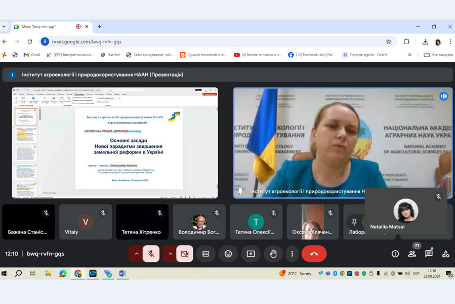 Під час курсів підвищення кваліфікації до учасників з вітальним словом звернулась директор Інституту агроекології і природокористування НААН, доктор економічних наук, професор, академік Оксана ДРЕБОТ. Заняття проводили керівники відділів та провідні науковці інституту, а кожна доповідь завершувалась жвавим обговоренням. Після завершення курсів директор Інституту агроекології і природокористування НААН, доктор економічних наук, професор, академік Оксана ДРЕБОТ підбила результати спільної роботи.