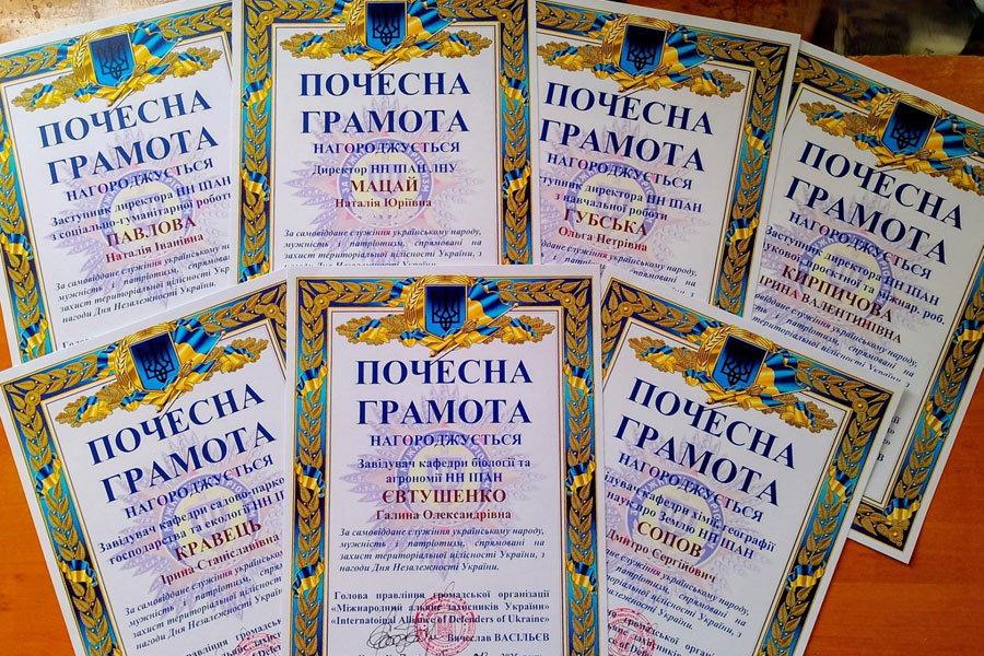 Почесні Грамоти для НН ІПАН було отримано від правління Громадської організації «Міжнародний альянс захисників України» за самовіддане служіння українському народу, мужність і патріотизм, спрямовані на захист територіальної цілісності України та з нагоди Дня Незалежності.