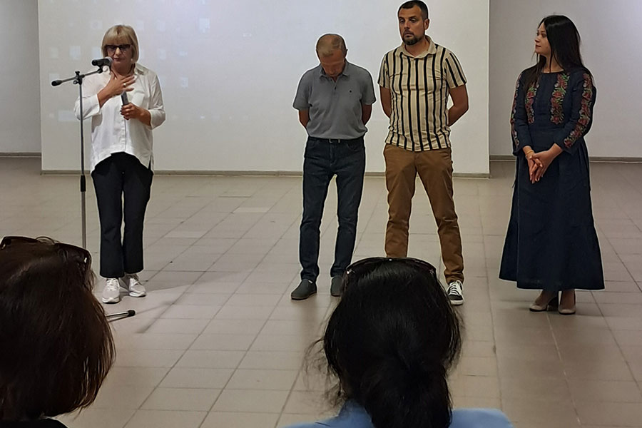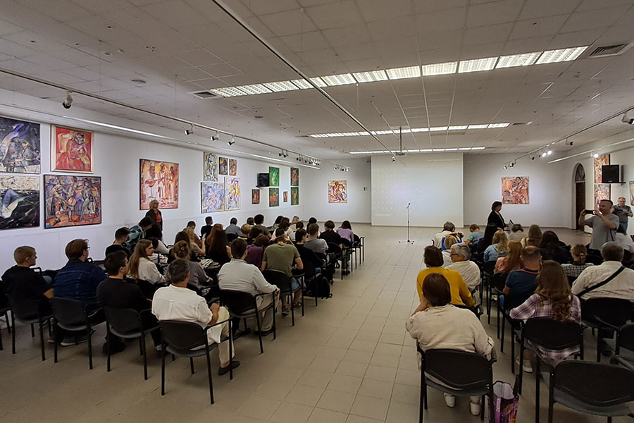 Перед показом вступні слова були сказані представницею Полтавської галереї мистецтв імені Миколи Ярошенка та знімальною групою цього фільму, яка складається з Наталія Іванченко (режисерка-постановниця, сценаристка), Дмитро Стариков та Максим Стариков (оператори-постановники). Також під час заходу була присутня Ольга Чернявська, ‒ викладачка кафедри аудіовізуального мистецтва навчально-наукового інституту мистецтв ЛНУ імені Тараса Шевченка — чий голос став закадровим супроводом фільму.