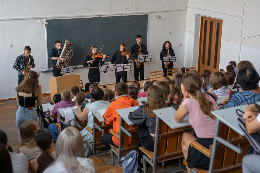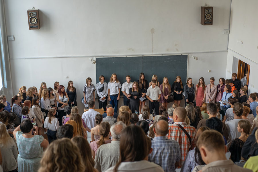 Через трагічні події в місті формат заходу було переформатовано у більш камерний. На зборах були присутні викладачі і співробітники, старшекурсники, перший курс і їх рідні.