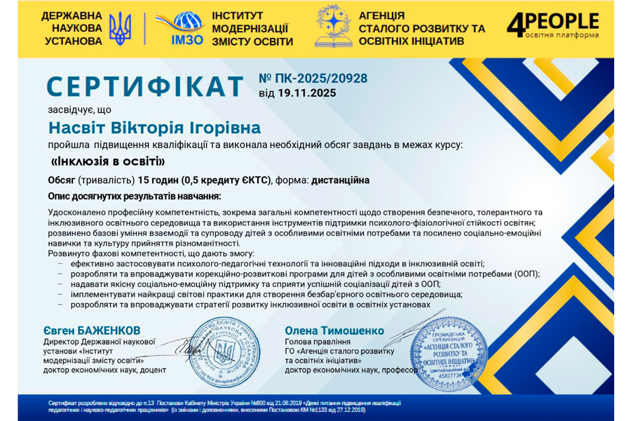 Кафедра спеціальної освіти ДЗ «ЛНУ імені Тараса Шевченка» й надалі активно працює над інтеграцією новітніх знань і практик у навчальний процес. Участь у таких заходах не лише розширює професійний світогляд викладачів та студентів, але й забезпечує здобувачам освіти актуальні компетентності, необхідні для успішної роботи у сфері інклюзивної освіти.