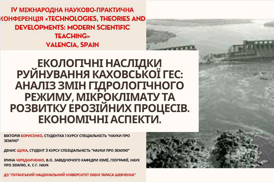 Доповідь була присвячена темі: «Екологічні наслідки руйнування Каховської ГЕС: аналіз змін гідрологічного режиму, мікроклімату та розвитку ерозійних процесів. Економічні аспекти».