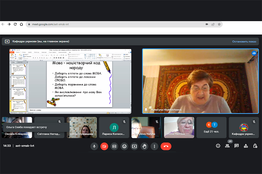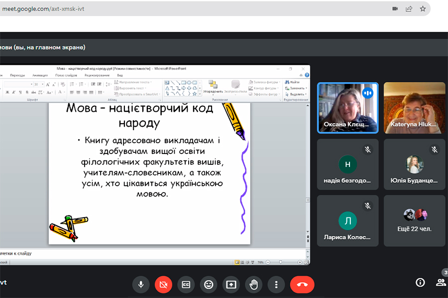 25 жовтня на кафедрі української мови відбулася презентація колективної монографії Катерини та Ірини Глуховцевих. У режимі відеозустрічі на платформі Google Meet зібралися поціновувачі української мови.