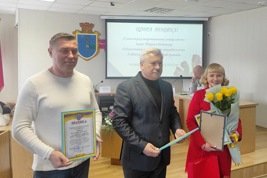 Виконавчий комітет Лубенської міської ради вручили подяки за плідну співпрацю, всебічну підтримку педагогічних працівників та вагомий внесок у розбудову освітньої галузі Лубенської територіальної громади Олені КАРАМАН, Володимиру МОРОЗУ, Віталію КУРИЛО.