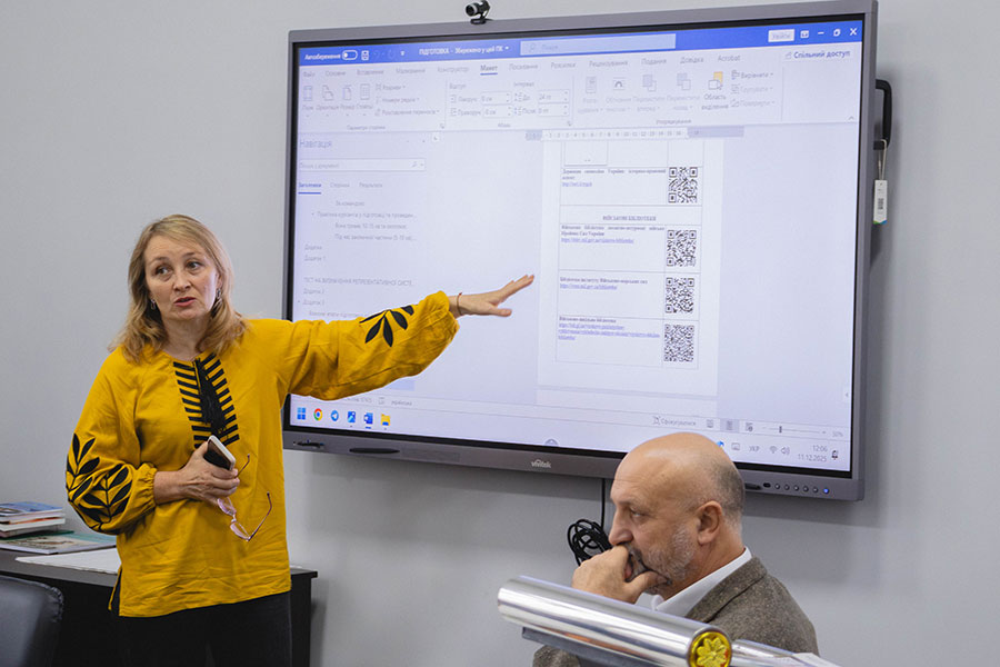 Один із примірників смартбуку було передано голові Вченої ради ЛНУ, академіку НАПН України, професору Віталію Семеновичу Курилу, з яким Петро Ворона мав змістовне фахове спілкування.