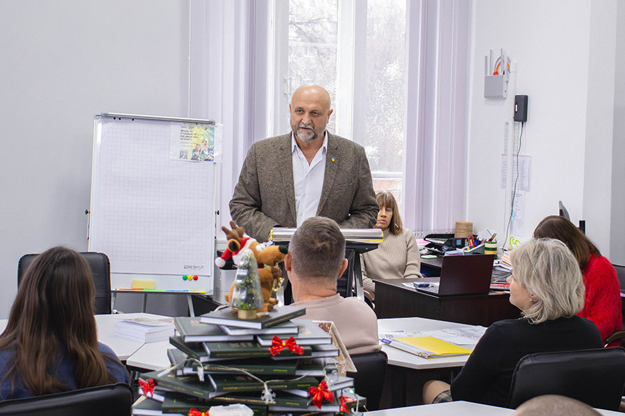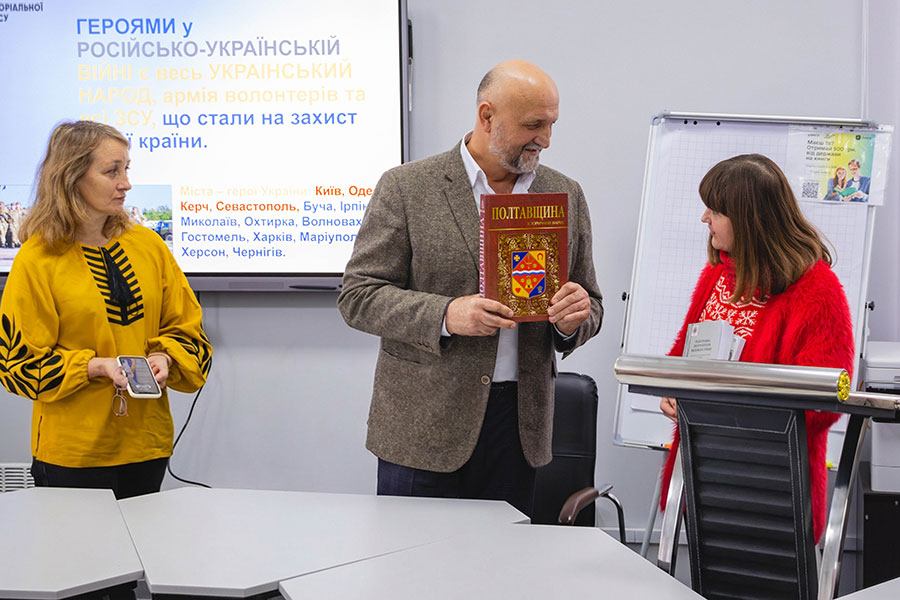Автори подарували університетській бібліотеці три примірники смартбуку, а також Петро Васильович передав книгу-нарис «Полтавщина».