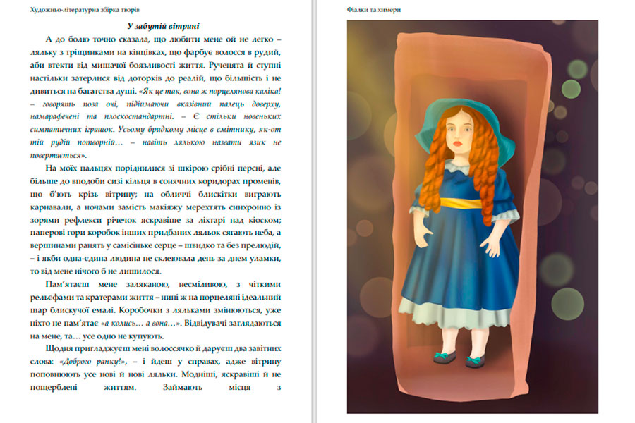 Збірку «Фіалки та химери» Євгенія власноруч ілюструвала та готувала до друку. Ілюстрації створені методом цифрового живопису, якому Євгенія навчилася у нашому інституті.