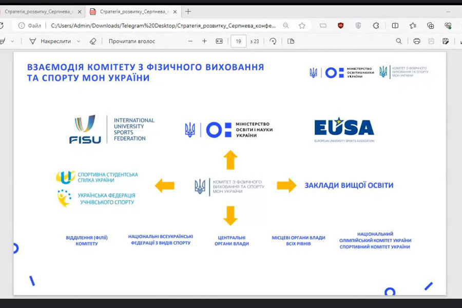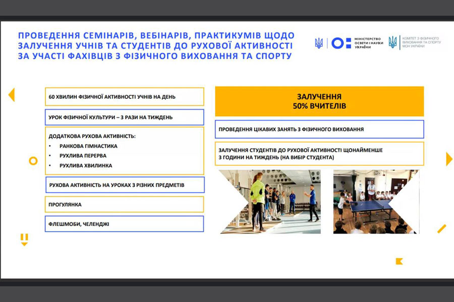 Під час заходу обговорено проведення Всеукраїнських спортивних і спортивно-масових заходів серед здобувачів освіти «Пліч-о-пліч» за підтримки Президента України.