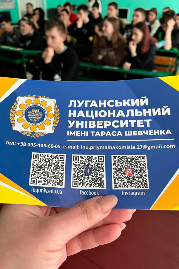 На заходах представники команди університету презентували випускникам історію та структуру Луганського національного університету імені Тараса Шевченка, надали інформацію про локації розміщення 10 навчально-наукових інститутів університету, 6 відокремлених фахових коледжів та центру професійної підготовки. Команда представила всі вступні пропозиції університету та коледжів, особливості проєкту умов вступу у 2024 році, пояснила особливості реєстрації та проходження НМТ, розповіла про діяльність студентського самоврядування університету.