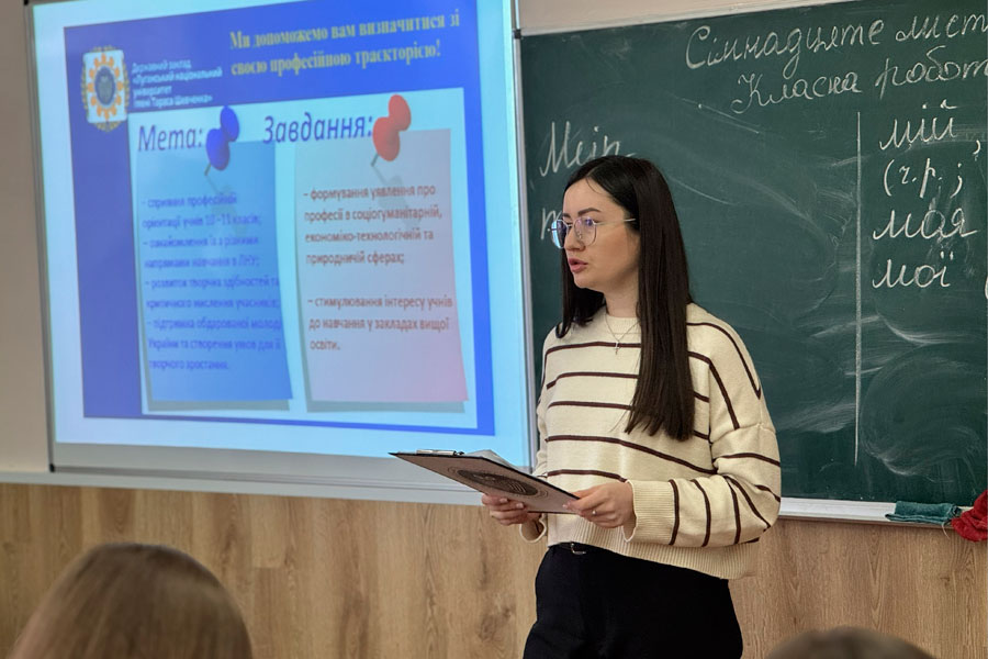 Під час зустрічей зі здобувачами освіти 10–11-х класів представники університету провели змістовні профорієнтаційні бесіди та презентували Всеукраїнський марафон професійно зорієнтованих конкурсів «Я обираю своє майбутнє», організатором якого є ЛНУ імені Тараса Шевченка.