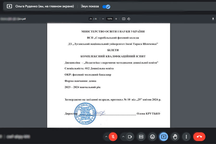 На початку кожного іспиту із вступною промовою до здобувачів освіти звернулася директорка коледжу, Олена КРУТЬКО, яка побажала успішного складання іспиту та самореалізації у професійній сфері.