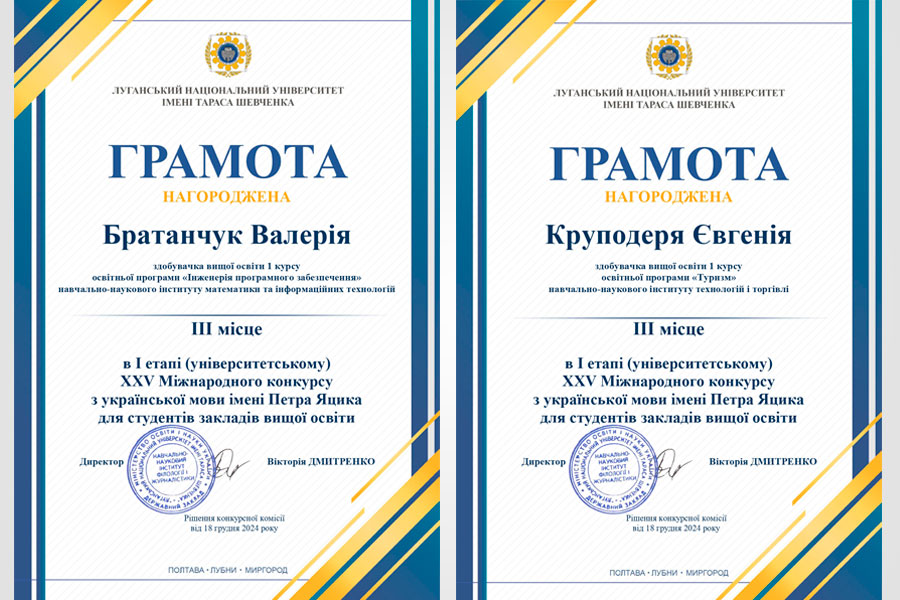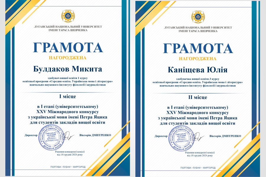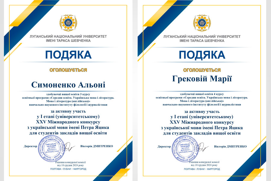 У першому етапі XХⅤ Міжнародного конкурсу з української мови імені Петра Яцика взяли участь студенти нашого університету з різних структурних підрозділів. Переможцями стали: