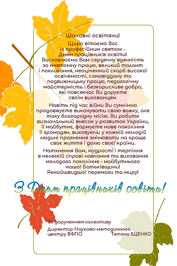 Зі святом шевченкінців привітали колективи Уманського державного педагогічного університету імені Павла Тичини, Науково-методичного центру ВФПО, Донбаського державного педагогічного університету.