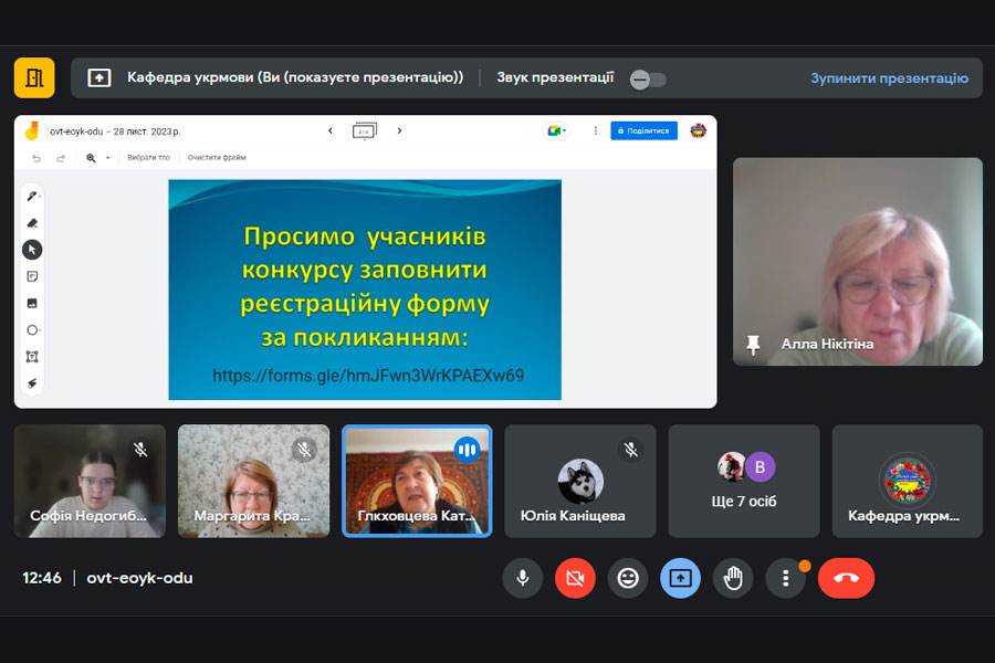 The Department of the Ukrainian Language invited all willing students to take part in the competition, which was held this year in a remote format. A video meeting on the Google Meet platform brought together teachers and students.