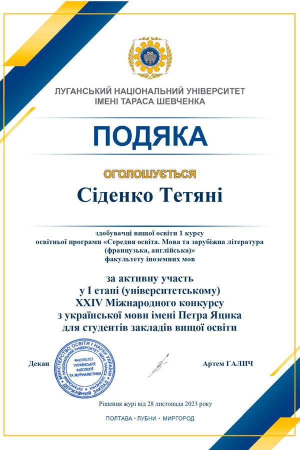 Results of the Ukrainian Language Competition named after Petro Yatsyk