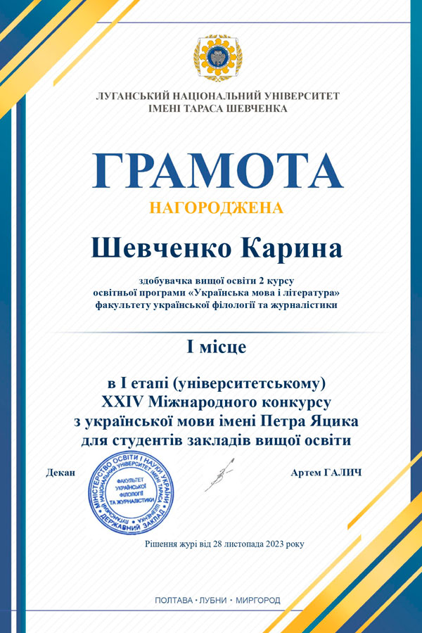 On November 28, 2023, the university held the 1st stage of the XXIⅤ International Ukrainian Language Competition named after Petro Yatsyk for students of higher education institutions.