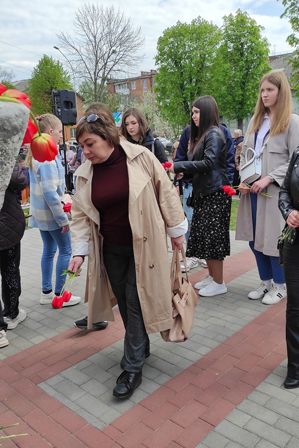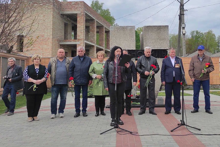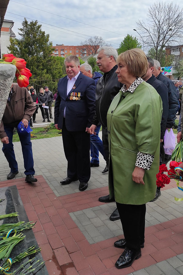 Так, першим відвідали пам'ятний знак у військовому містечку спільно з Лубенською міською громадською організацією інвалідів «Ветерани Чорнобиля». Голова організації Лариса Погребняк подякувала присутнім за участь у заходіта коротко розповіла, коли і кому було встановлено цей знак. Присутні поклали квіти та вшанували загиблих хвилиною мовчання.
