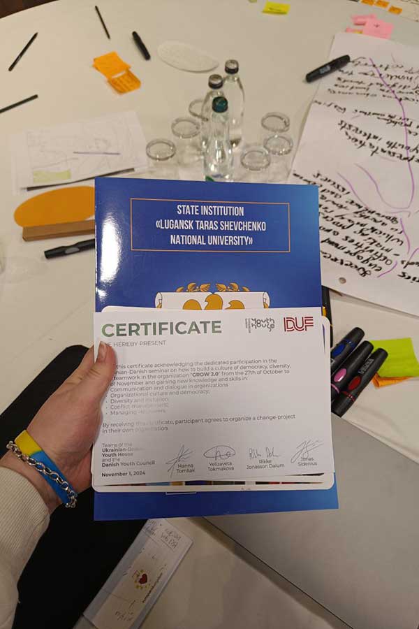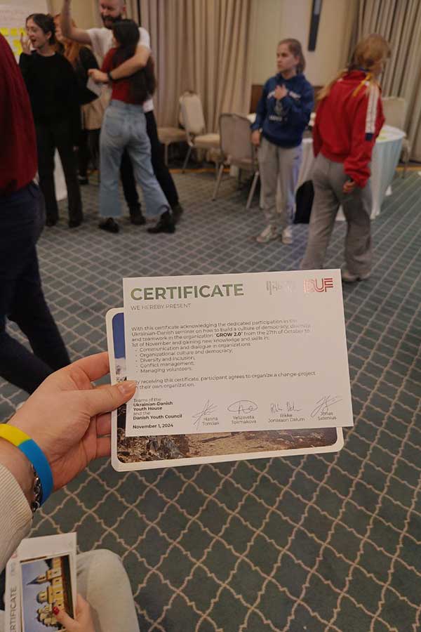 Протягом останнього дня учасники представили свої проєкти, демонструючи набуті знання та результати командної роботи. У фіналі заходу відбулася урочиста церемонія вручення сертифікатів усім учасникам. Семінар став не лише майданчиком для обміну знаннями та досвідом, а й сприяв налагодженню нових міжнародних зв’язків. Представники з України та Данії домовилися продовжити співпрацю, підтримувати зв’язок і спільно працювати над реалізацією нових проєктів і впровадженням позитивних змін у своїх країнах.