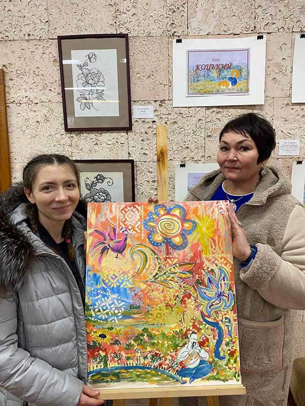 Завершилася подія створенням спільної картини відвідувачами виставки за участі унікальних майстрів: Євгена Пілюгіна (заслужений майстер народної творчості України, голова ПОО НСМНМУ), Лідії Орел (майстриня декоративного розпису і писанкарства, членкиня ПОО НСМНМУ, викладачка Полтавської дитячої художньої школи імені Святослава Пашинського), Тамари Пилипенко (майстриня, членкиня НСМНМУ). Всі гості мали змогу відчути себе у ролі художника.