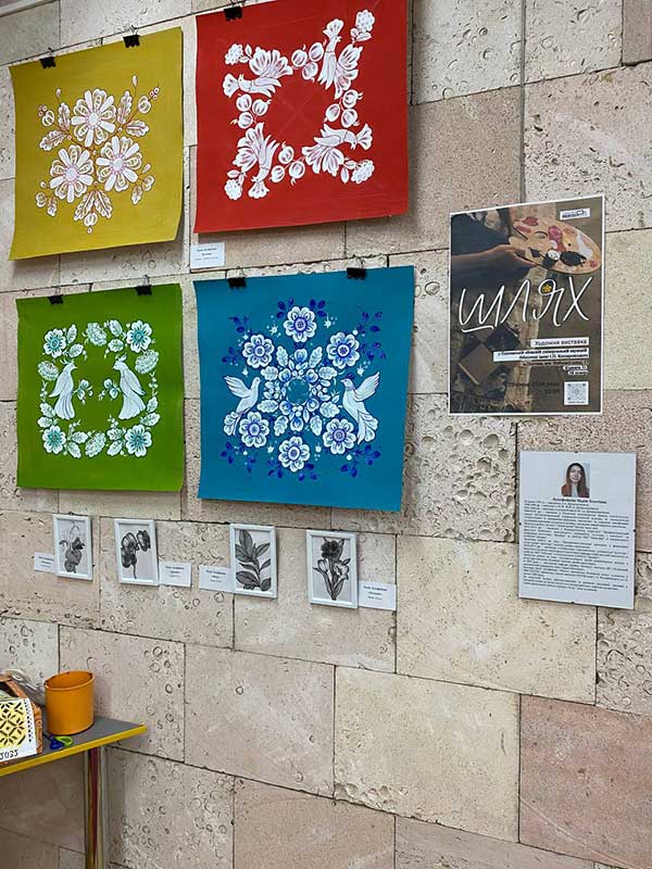 На експозиції представлені роботи картини-мальовки та книжкові ілюстрації. Виставку відвідали викладачі та студенти кафедри дизайну.
