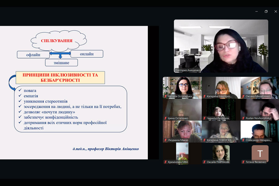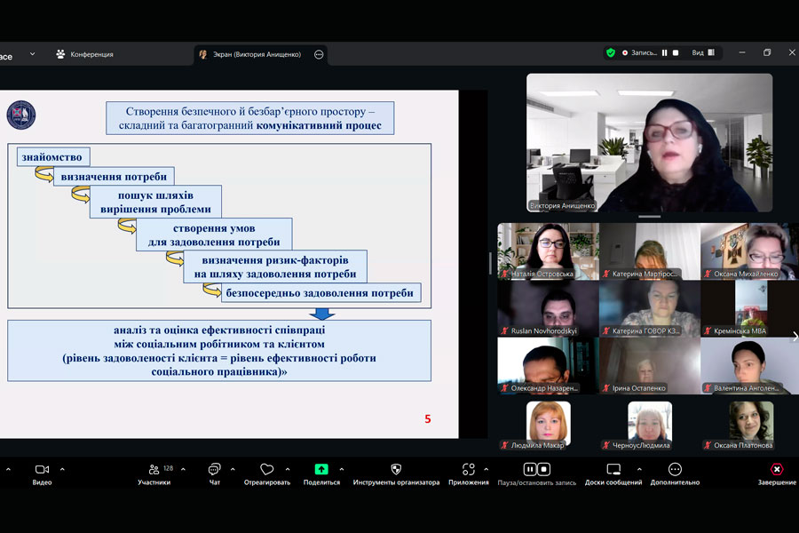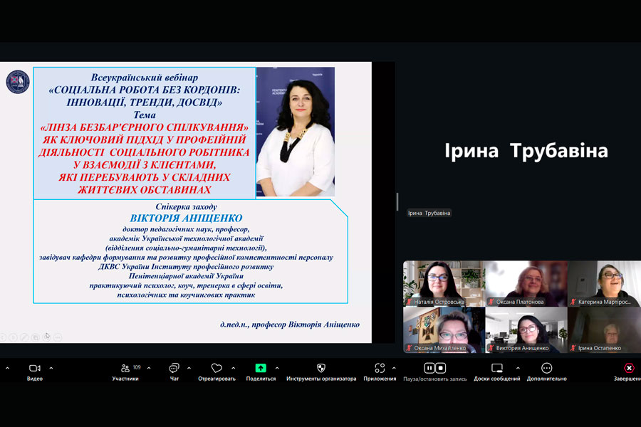 Тема восьмого вебінару – «Лінза безбар’єрного спілкування» як ключовий підхід у професійній діяльності соціального робітника у взаємодії з клієнтами, які перебувають у складних життєвих обставинах.