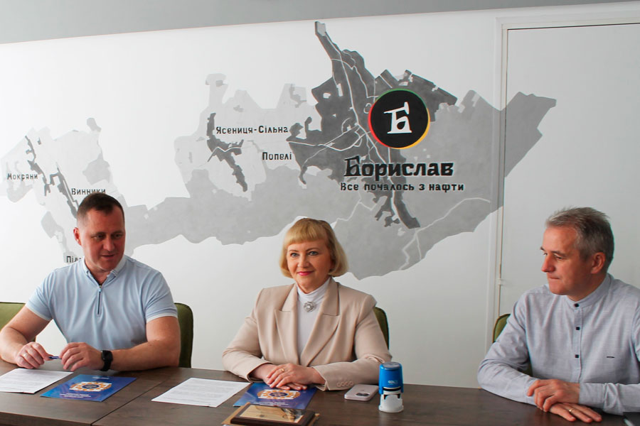 У малій залі засідань Бориславського міськвиконкому гостей зустріли: міський голова міста Борислава Ігор ЯВОРСЬКИЙ, заступник міського голови з питань діяльності виконавчих органів ради Мирон ЦАЙТЛЕР, керівниця освітньої галузі громади Елла КАЧМАРЧИК, керівниця Бориславського управління Дрогобицької філії Львівського обласного центру зайнятості Галина ЦИБЕНКО, керівниця «Центру професійного розвитку педагогічних працівників» Бориславської міської ради Ірина ТАТОМИР.