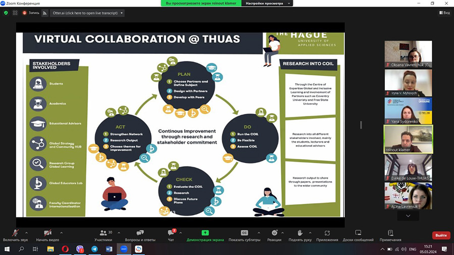 Увага була приділена питанням розробки та впровадження COIL-курсів (пошук закордонного закладу-партнера, підготовка пакету документів, організація кожного з етапів співпраці, міжкультурна складова, мовні й психологічні бар’єри, узгодження часу, дат, формування команди викладачів і студентів, реалізація проєкту), а також моніторингу та оцінці результатів в рамках COIL-навчання.