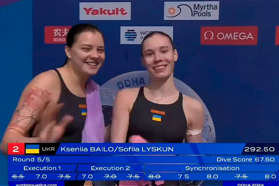 Здобувачка ІІ курсу спеціальності "Фізична культура і спорт" навчально-наукового інституту охорони здоров'я і спорту ДЗ "Луганський національний університет імені Тараса Шевченка" Ксенія Байло разом з випускницею Інституту Софією Лискун вибороли ліцензію на Олімпійські ігри в Париж-2024 у синхронних стрибках з вишки!
