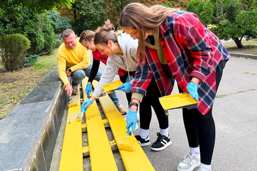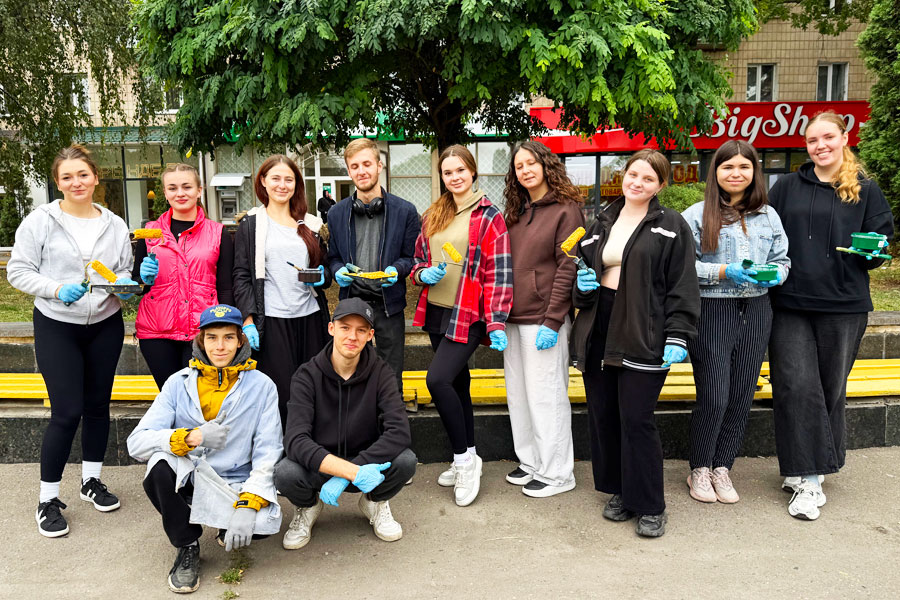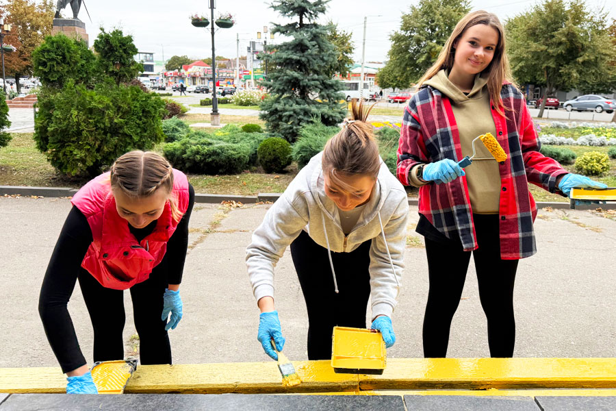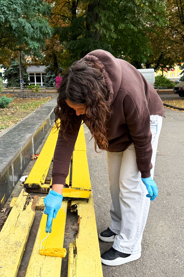 Молодь з натхненням фарбувала лавки та впорядковувала територію біля пам’ятника Тисячоліттю заснування Лубен. Робота проходила дружно, в атмосфері єдності та командного духу, що стало яскравим прикладом відповідальності й згуртованості.