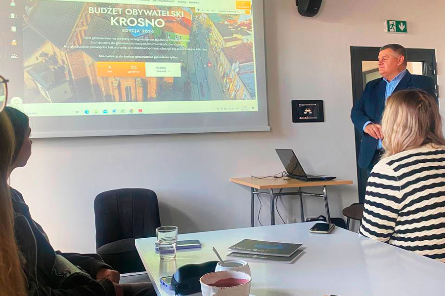 Учасники програми зустрілися з президентом міста Кросно, який розповів про історію міста, його сучасний розвиток, особливості місцевого самоврядування, діяльність громадських організацій, а також про електронне голосування мешканців за громадські проєкти, що впроваджується в межах відкритого врядування.