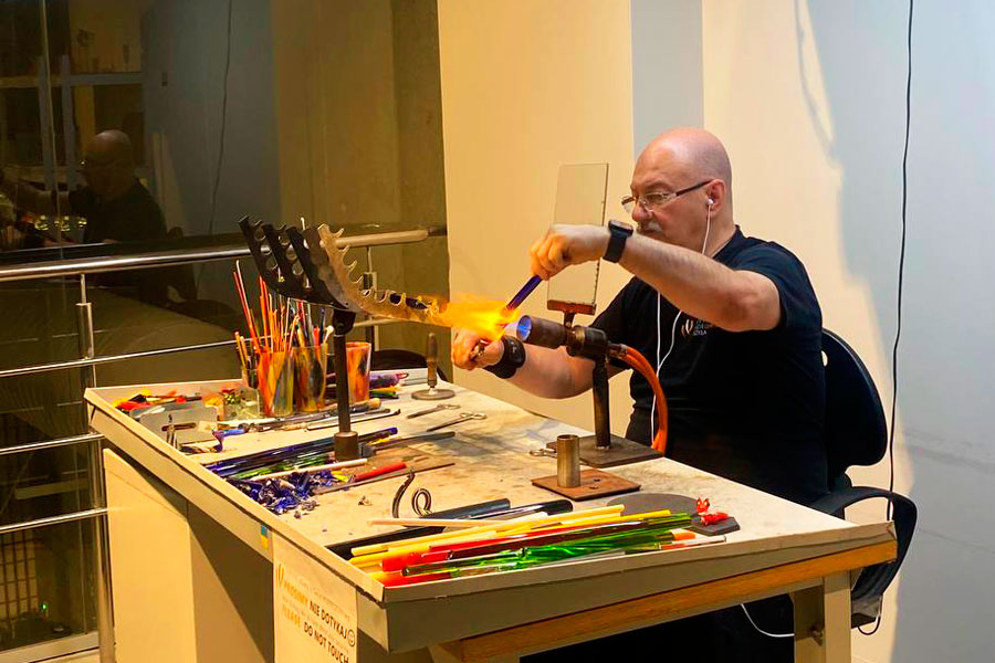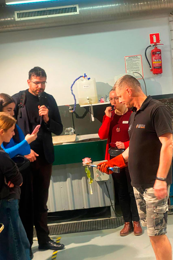 Далі відбулася екскурсія на скляний завод Krosno, який є найбільшим підприємством такого типу в Польщі та відомий у всьому світі як виробник високоякісного скляного посуду для барів, ресторанів і побутового використання. Під час візиту учасники змогли на власні очі побачити процес виготовлення скла — від розплавлення до формування готових виробів — і навіть взяти участь у створенні скляної печатки, що стало яскравим і незабутнім досвідом.