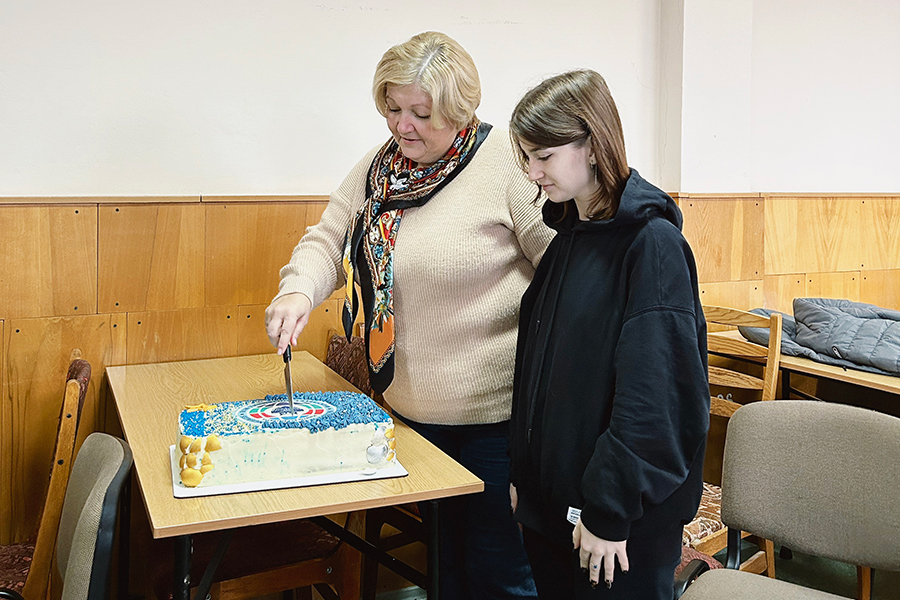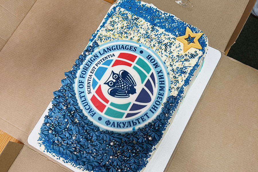 Головною частиною заходу був солодкий подарунок у вигляді фірмового торту з емблемою факультету, який урочисто розділили та смакували усі присутні.